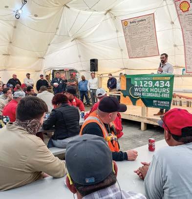 Deer Park, Texas — Turner Industries employees at Shell Chemicals in Deer Park, Texas recently celebrated 1,129,434 workhours without an OSHA recordable incident. Management from Turner and Shell attended the celebration, which included a well-deserved lunch for all employees.