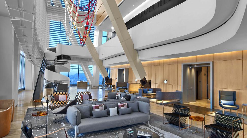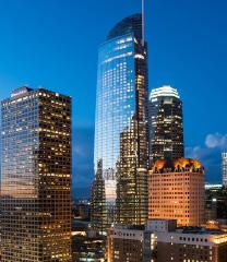 Breaking conventions as Los Angeles’ first skyscraper without a flat roof, is the 73-story tower of mixed-use office and hotel spaces. Within its walls, the prestigious four-star InterContinental hotel has redefined luxury accommodations, with guests experiencing the unparalleled 73rd-floor sky lobby along with signature observatory, sky pool deck, and restaurants. Included in the hotel are 900 state-of-the-art four-star hotel rooms, bringing a new level of luxury to Los Angeles.