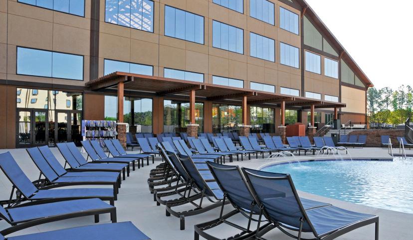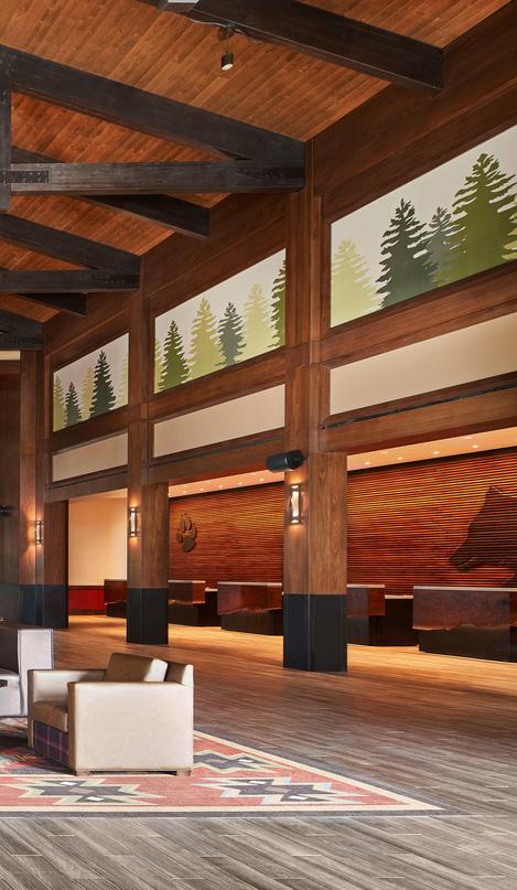 Turner served as the CM at Risk for the Great Wolf Lodge in Manteca, CA, delivering a 516,000 sf ground-up resort and indoor amusement destination. The project includes a 500-room familyfocused hotel, approximately 10,000 sf of flexible meeting and conference space, and a 95,000 sf indoor water park featuring multiple slides, pools, and themed attractions. In addition to the indoor water park, the resort offers an outdoor pool area, bowling alley, retail spaces, themed restaurants, a miniature golf course, and a variety of branded amenities and immersive entertainment experiences designed to create a year-round destination for guests.