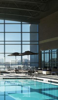Many of the design features have been adopted as the standard for new Sheraton hotel developments. Amenities include the 1906 bar/restaurant, a lobby lounge/bar, kitchen, business center, 24-hour fitness center, indoor pool, gift shop, and attached two-level, 415-space parking structure.