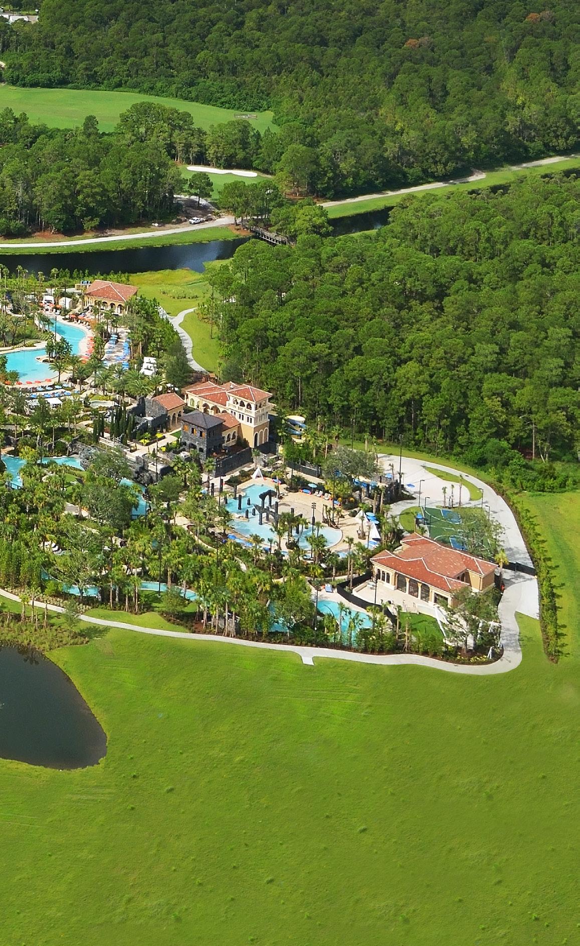 The Four Seasons Resort Orlando at Walt Disney World® Resort is a 5-star luxury hotel located on a pristine 36-acre site. The 18-floor hotel tower and conference center includes over 630,000 SF and 434 guest rooms. The main building includes two restaurants, a conference area with two ballrooms, seven meetings rooms, a boardroom, a late departure lounge, a spa with eighteen treatment rooms, and a fitness facility. The site includes seven additional buildings totaling over 30,000 SF that contain two meeting rooms, a pool equipment room, outdoor bar and grille, a themed water park for kids, a young adults building, and an additional restroom building. It is interlaced with an adult pool, family pool, kid’s splash area, lazy river, water slides, volleyball court, basketball court and, three tennis courts. Multiple water features are located across the site which also includes two feature lakes separated by a waterfall.