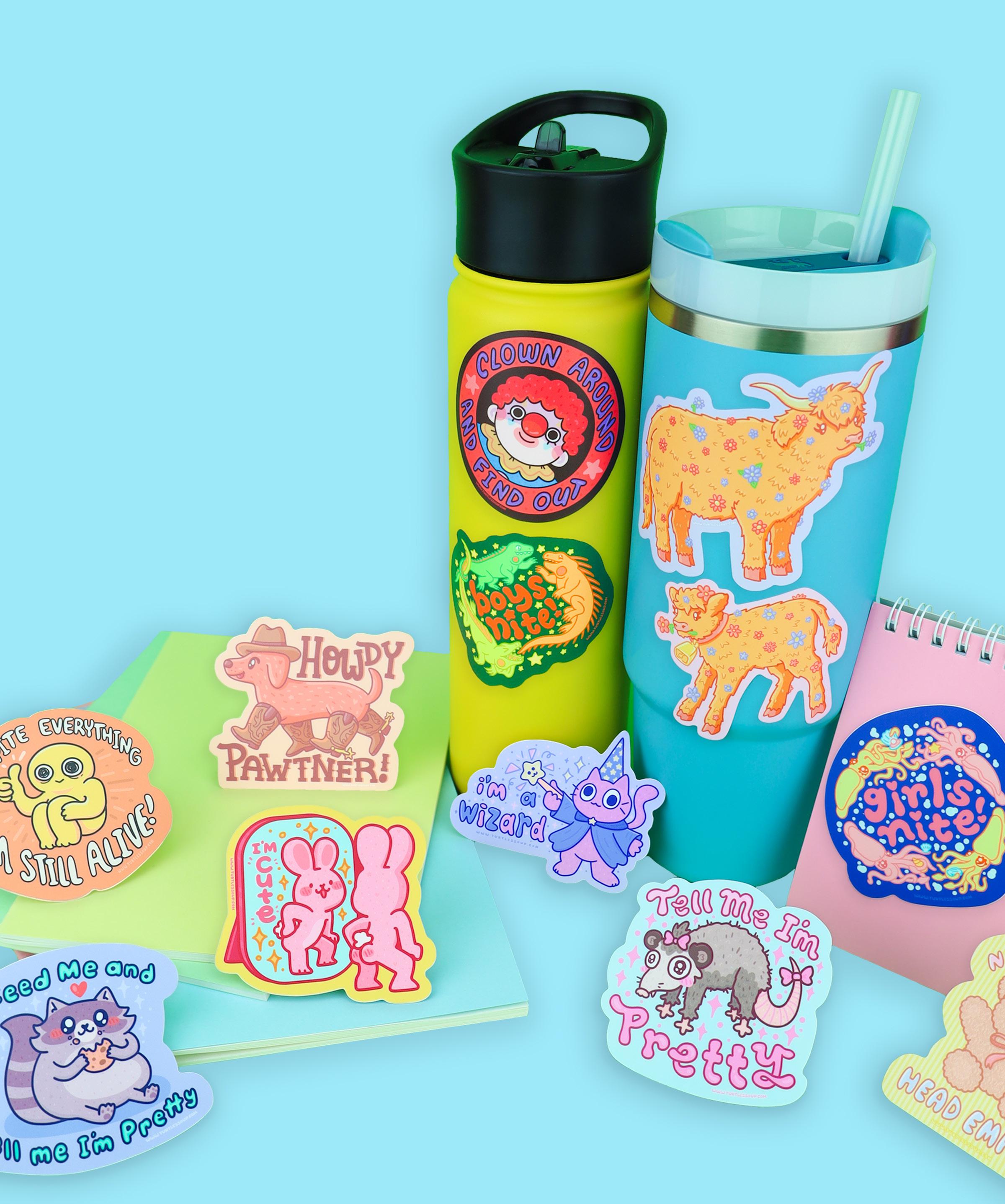 We proudly serve as your one-stop sticker shop; we design each unique product in-house. Our best-selling vinyl stickers are crafted with care, using cutting-edge printing technology to ensure vibrant colors and precision that bring our designs to life. When you choose our stickers, your customers will appreciate the quality that makes us stand out!