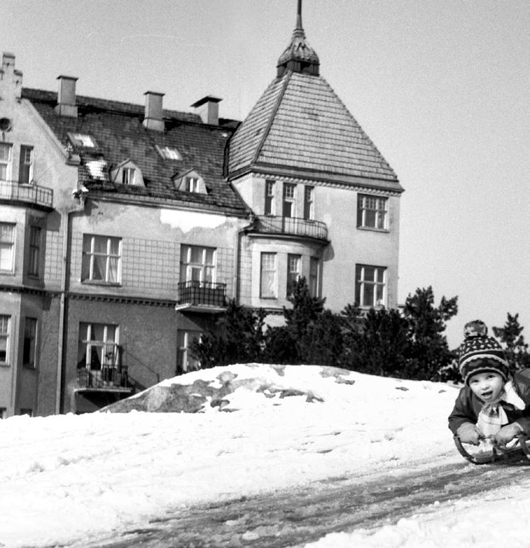 Mäenlaskua Puolalanpuistossa 1960-luvun alussa.