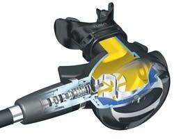 A newly re-designed battery life indicator allows the diver to easily check battery status while in motion.