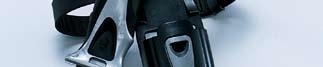 The skirt mounted quick adjust buckle system incorporates a newly-designed low-profile buckle into the crystal silicone skirt of the mask. The result is a compact, lightweight, technologically advanced mask design that can be easily and quickly adjusted for a perfect fit.