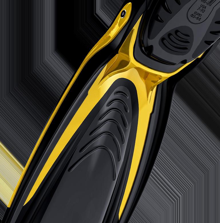 The patented Hybrid Blade System offers unparalleled propulsion, efficiency and power transfer in a multicompound design. The H.B.S. is composed of incredibly stiff side rails and an ultraresponsive membrane blade giving unlimited kicking potential.