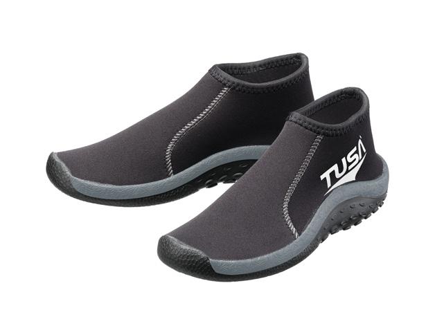 Mid-cut shoes provide ankle protection. Soft and easy to put on and take off. Soft rubber sole prevent slipping. Equipped with drainage holes. Heel cup to prevent fin slip.