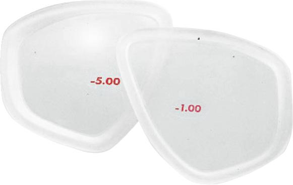 Corrective Lenses are offered on several styles of masks. This option allows the diver to choose right and left lens powers in both a variety of diopters for maximum flexibility and for a custom fit.