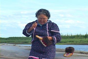 and Raquell Nuttal. Fred Trimble from Inuvik also had his “whalebone and soapstone carving chosen for 2005 image”. Brendalynn Inuk Trennert and Julia Pokiak Trennert came from Hay River to share their art of “moose and caribou hair tufting”.