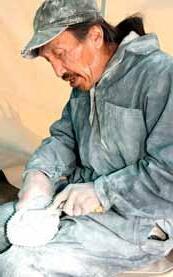 Haogak has been a seamstress for years. Her fine creations include fancy shoes embroidered with colorful flowers; from concept to finished product crafted by her own hands.