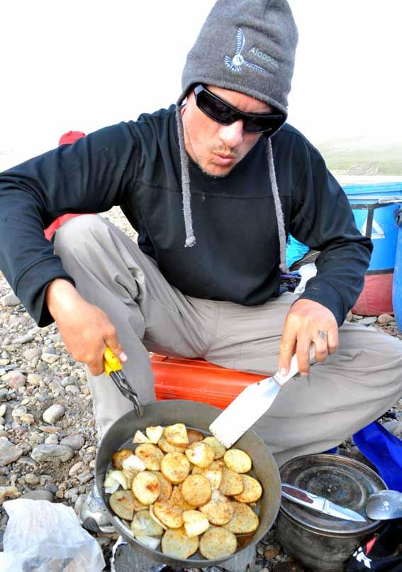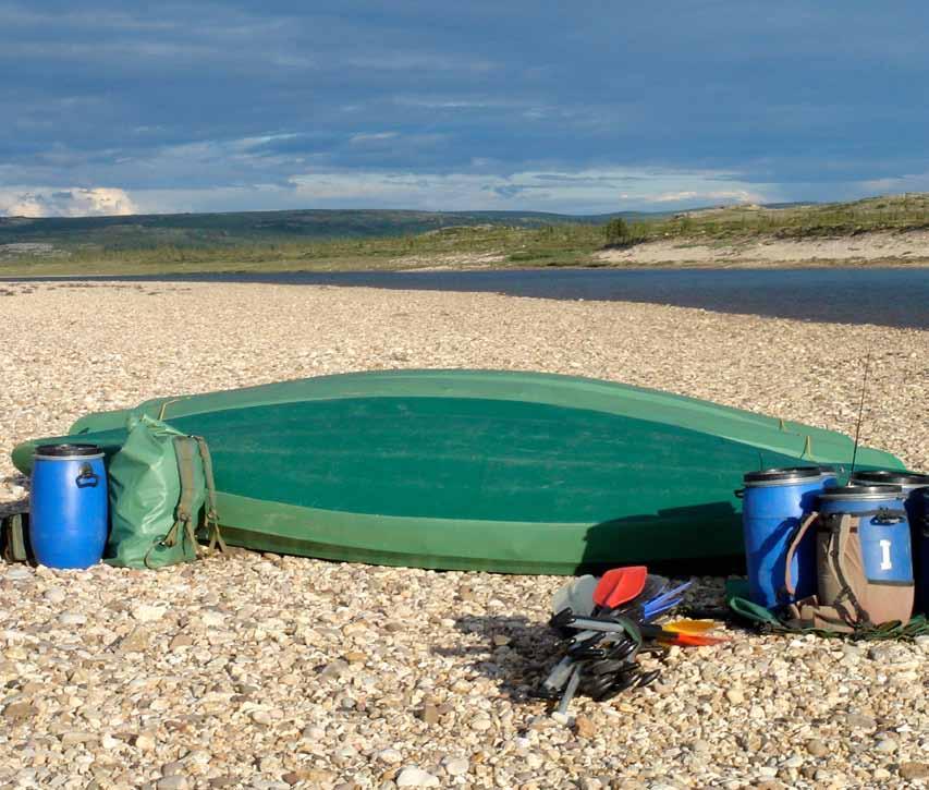 Horton River; which is the lower section of the river that passes through the tree line, the tundra, rolling hills and the Smoking Hills near the ocean, and finishes next to the river’s mouth close to the end of Cape Bathurst. The two-week expedition begins with a flight with Aklak Air from Inuvik to a gravel bar close to where the Whaleman River flows into the Horton. After assembling the folding Ally canoes, participants break into both tent and food groups and canoeing partners. After this, the students then head off to the white water sections of the Horton River. »