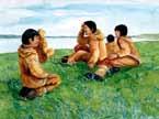 CHARISSA ALAIN-LILLY - CRAFTWORK LENA WOLKI - CRAFTWORK ROBERT BUCKLE - JEWELLERY EENA ANGMARLIKS - PRINTMAKER JAMES WEDZIN - PAINTER Robert Kuptana working away in the artist workshop. Priscilla and sister Denise Taylor. Priscilla Taylor carving. MARGARET v ITTREKWA - BEADWORK