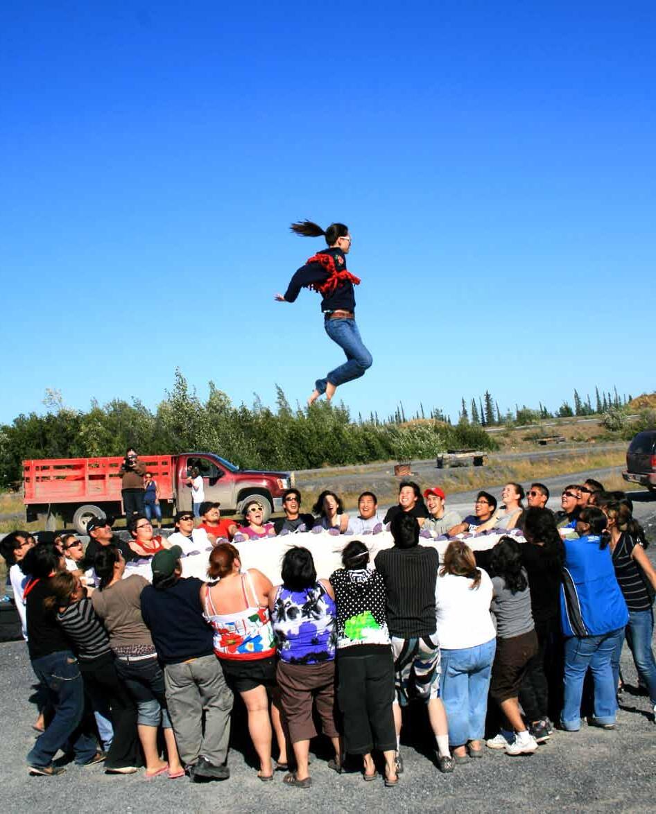 In mid air Karis Gruben enjoys a game of Blanket Toss. PHOTO: Peggy Jay