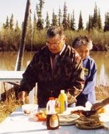 Warren Esau, Glenda Carpenter and Charlton Haogak fishing.
