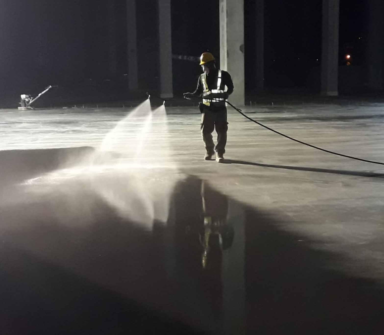 In normal curing condition (before 30C,under roof, no wind), no further curing is needed. In adverse condition (above 30C,windy, very low humidity), 2 to 3 days ofwater is recommended after the placementof the floor.