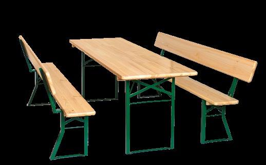 Biertischgarnitur mit Lehne Mit klappbarer Rückenlehne, aus Kiefernholz, beidseitig naturfarben lackiert, pulverbeschichtetes Gestell (grün)