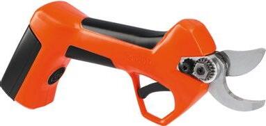 Mod. Stocker Kantia E-22 TR. Kompakt und ergonomisch, wiederaufladbarer Li-Ionen-Akku mit 2,5 Ah / 7,2 V, max. Dauerbetriebsdauer 1,5 Stunden, was etwa 1.000 Schnitten an Ästen mit einem durchschnittlichen Durchmesser von 15 mm entspricht, bürstenloser Motor mit 180 W, Länge 28 cm, Gewicht 780 g