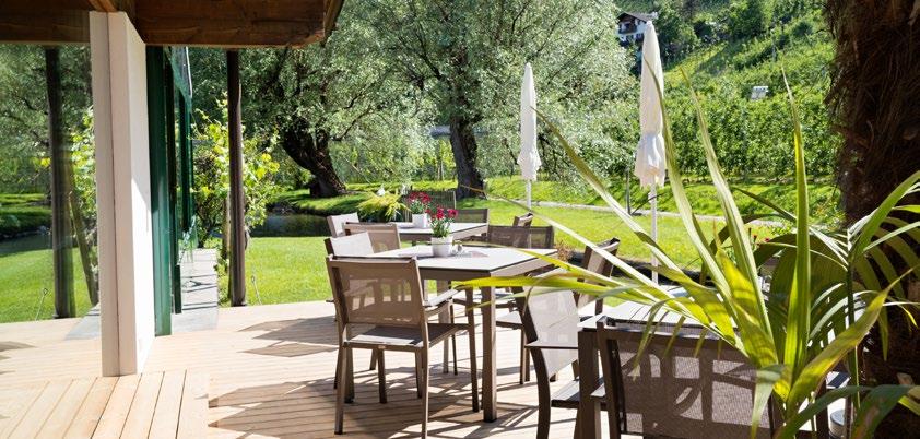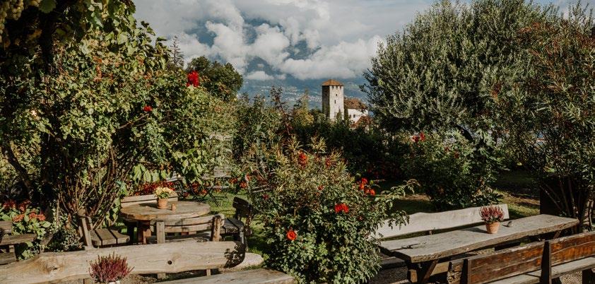 Stop over for a breakfast (prior reservation required), order coffee or simply relax with an aperitif in the rustic cellar or lush garden of this beautiful estate in the Etschtal Valley. Tasteful, romantic ambience on the outskirts of Gargazon.
