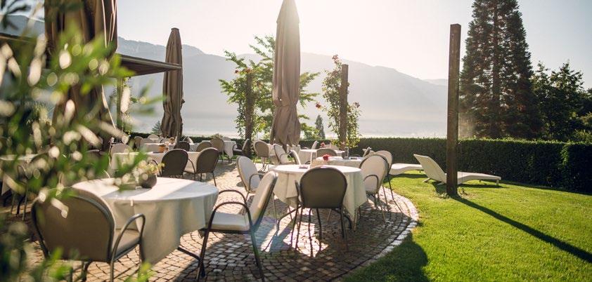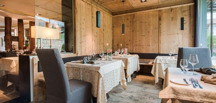 La cucina del ristorante offre una vasta scelta di piatti casalinghi e stagionali, come asparagi e aglio orsino in primavera e piatti tradizionali durante il periodo del “Törggelen” nella tipica cantina in autunno. La vista panoramica dalla terrazza soleggiata è spettacolare. Il ristorante è ideale anche per gruppi.