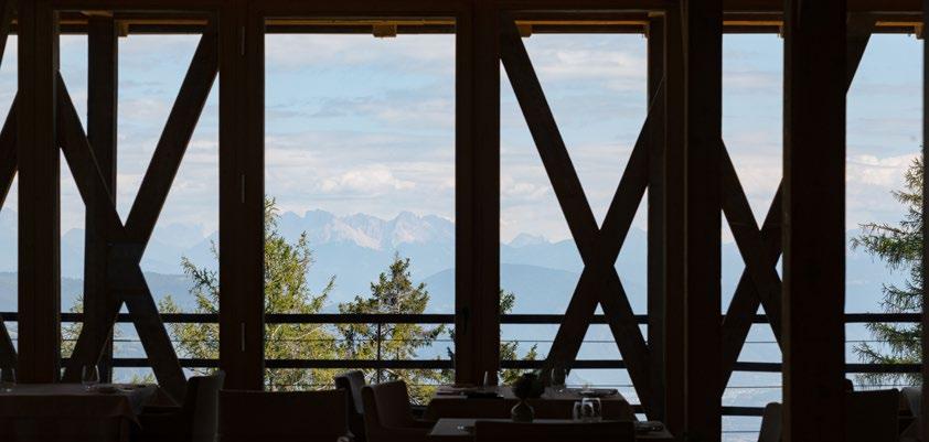 The restaurant offers a wide selection of home-made and seasonal dishes, such as asparagus and wild garlic in spring and traditional specialities during the ‘Törggelen’ period in autumn. The panoramic view from the sunny terrace is spectacular. The restaurant is also suitable for groups.