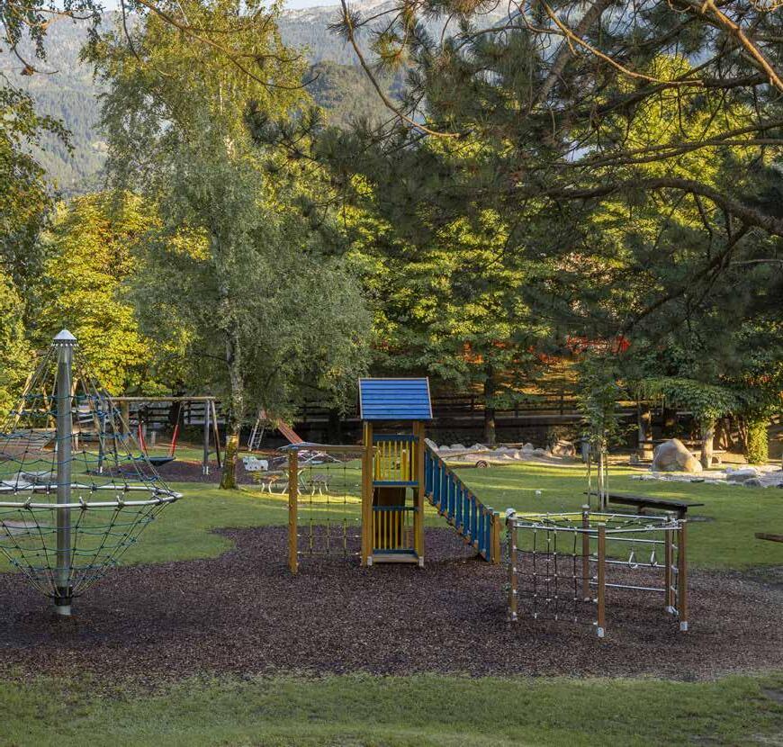 Posizione: il più grande parco giochi nel centro di Naturno, posto nelle immediate vicinanze della stazione e lungo la pista ciclabile, zone soleggiate e d’ombra