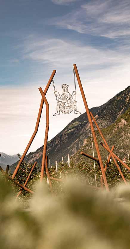 E se volessimo fare una gita, prendiamo il prossimo autobus o il treno della Val Venosta, il bruco colorato che serpeggia lungo la valle! Possiamo così visitare Merano oppure la Val Venosta. Anche lì ci sono un sacco di cose da scoprire.