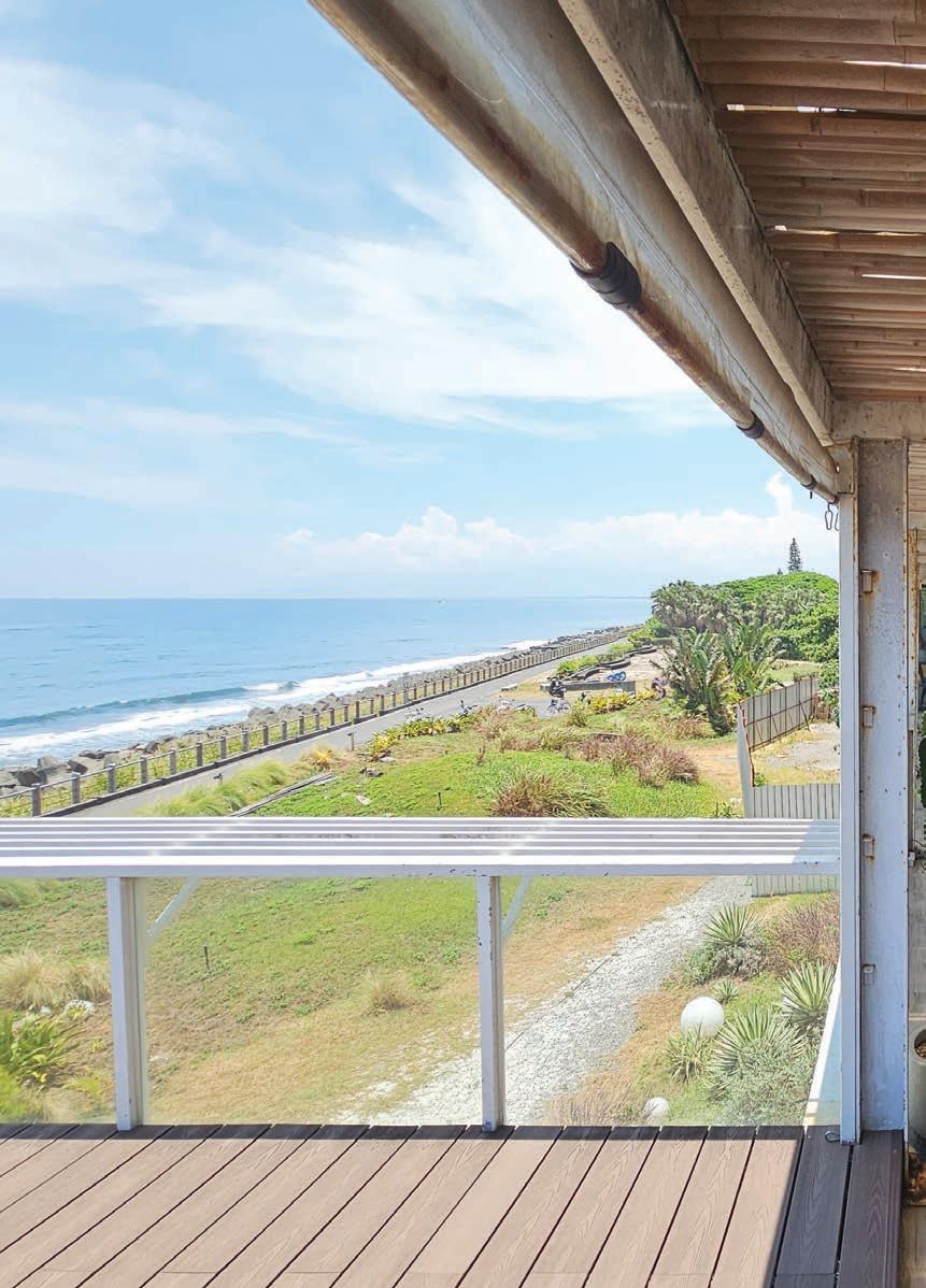 很有渡假氣息的房子,頂樓可以細賞 迷人海景,白天就是看海嘆咖啡,從大太 陽到黃昏晚霞,晚上咖啡店變身成很有氛 圍的酒館,聽著浪聲微醺。