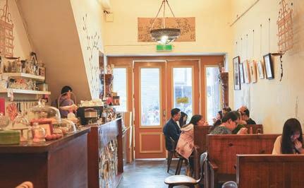 位處街角轉處被植物包圍的老木屋,店裡 不大,滿室掛滿乾燥花,配上老舊物件,有 一種秘密基地的感覺,亦為老屋添上唯美的 風格,這裡提供咖啡及茶飲,但也比不上可愛 店貓,更吸引客人的注意。 珈
