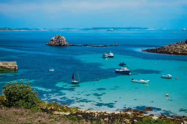 Scillyøyene, England Vis noen et postkort fra Scillyøyene, og de vil antakelig gjette at bildet er tatt et sted i det karibiske hav. Øygruppa vest for Cornwall er kjent for sukkerhvite strender, neonblått badevann, flere tusen år med historie og et usedvanlig mildt klima til England å være. Selv på vinterstid er temperaturen her som i Sør-Frankrike. Øyene
