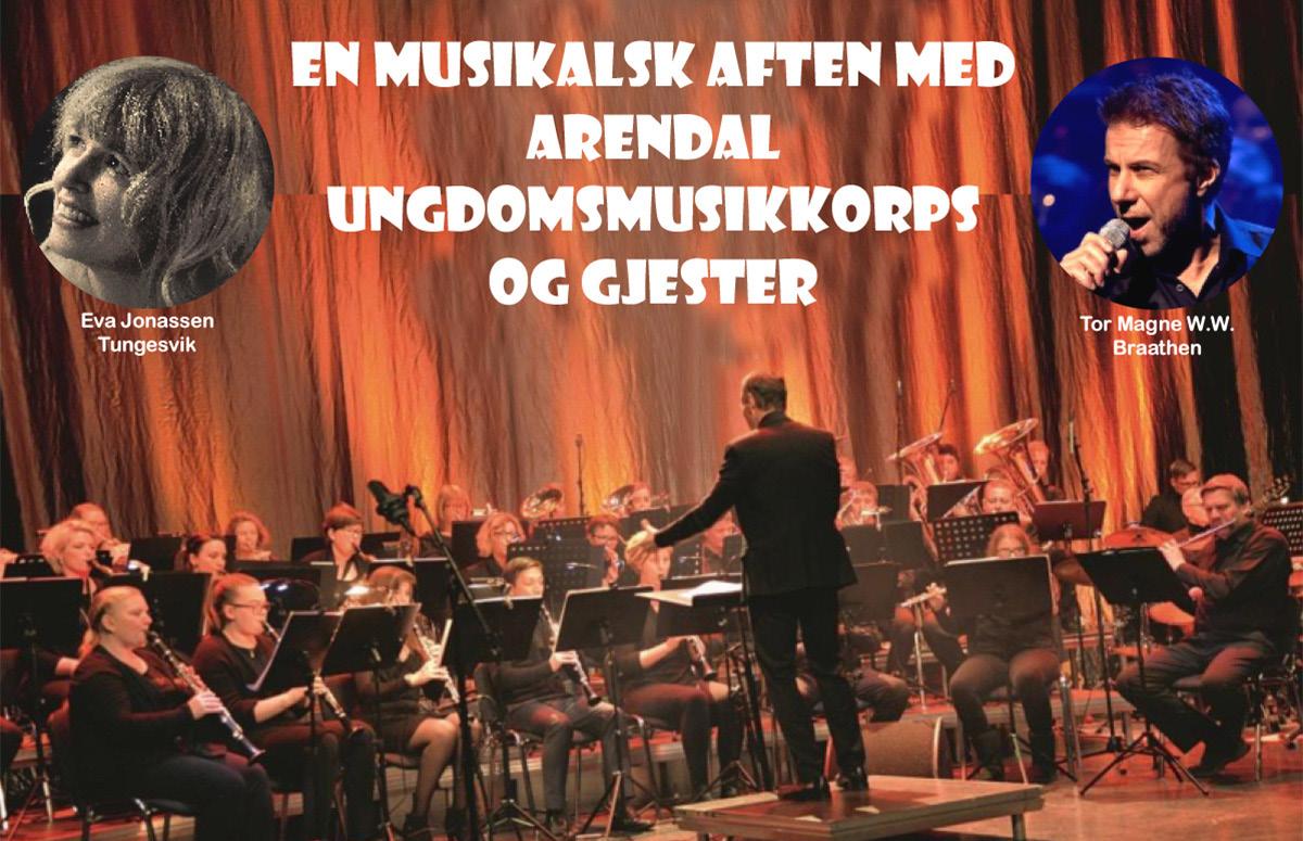 Arendal Ungdomsmusikkorps får med seg Eva Jonassen Tungesvik og Tor Magne Braathen til en musikalsk aften i Arendal Kulturhus. Eva og Tor Magne vil sammen med korpset servere klassikere fra flere kjente musikaler, som West Side Story og Les Misérables.
