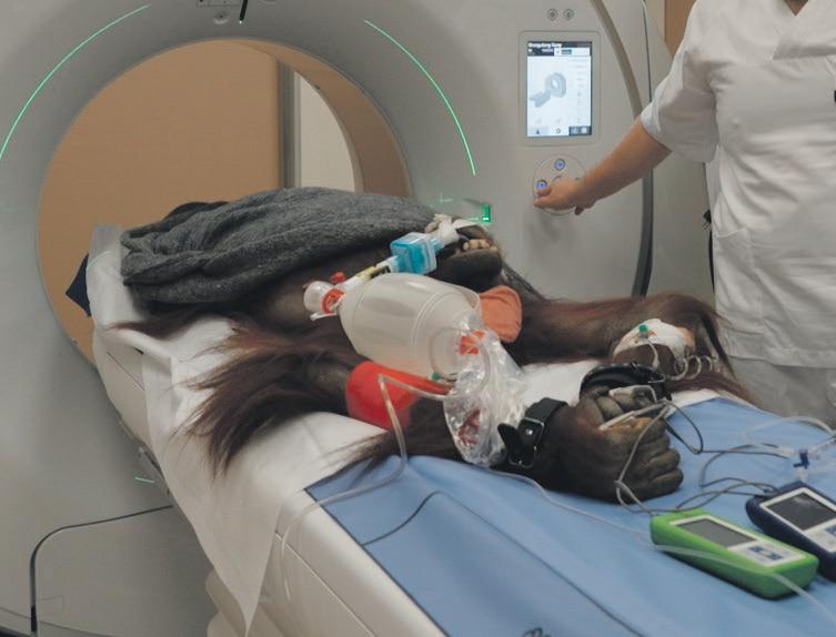 Det er ikke uvanlig for orangutanger å få kroniske problemer med halsposen og respirasjonssystemet, både orangutanger i naturen så vel som i dyreparker. Nå er hele overkroppen til den 60 kilo tunge hunnen scannet, og Dyreparken venter på svar fra undersøkelsen.