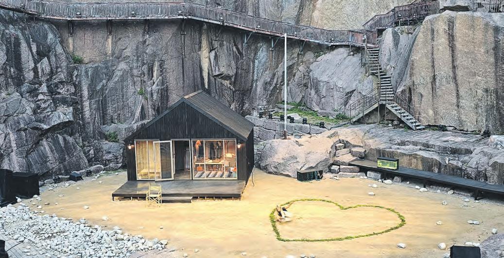 Tekstet Ibsen i steinbrudd Fredag 19. juli er det premiere på Fruen fra havet i det spektakulære, røde steinbruddet i Fjæreheia, og i år er det ikke bare naturen og dramatikken som setter stemningen. Publikum kan nå følge handlingen med samtidige undertekster på