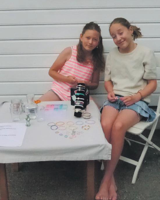 Marit Fredheim Bjorvand (11) og Sofie Sela (11) satt flere dager i Posebyen og solgte perlearmbånd og ringer de lager selv mens de sitter der.