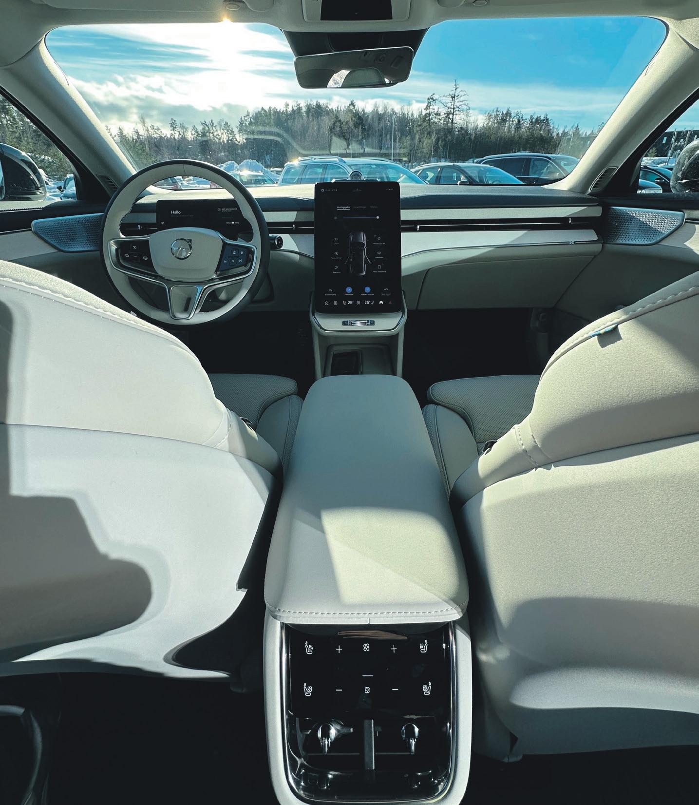 seg på svingete veier med hardpakket snø og is. Når vi av og til fikk en skrens ble den raskt rettet opp av bilens ESP og det hele fungerte utmerket. Er det kanskje litt overdrevent dette med at «alle» skal ha firehjulstrekk? Like viktig er det nok med god bakkeklaring. Her stiller ES90 med solide 18 cm, og utgaven vi kjørte hadde dessuten luftfjæring som kan heve bilen ytterligere 3 cm om behovet skulle melde seg.