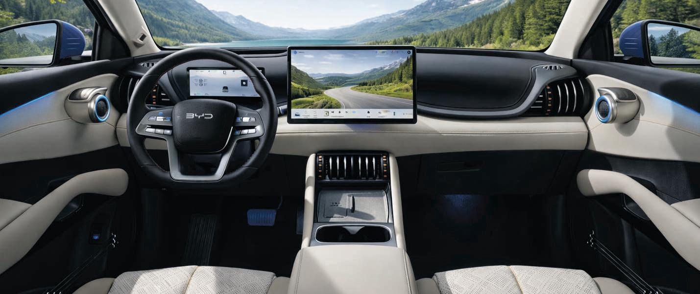 LEKNE FORMER: Svømmende sjødyr var visstnok i tankene til designerne da de tegnet interiøret, både i Atto 3 og i den nye EVO 4x4. Vi synes det er blitt vellykket. Myke overflater hinter om premium.