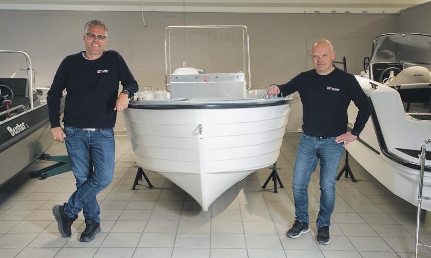 NYHET: Hobby er et nytt norsk merke hos Kristiansand Bådsenter. Hobby kommer med prisgunstige og praktiske bruksbåter mellom 14-19 fot. Her viser Lars og Erik en skjærgårdsjeep velegnet for fiske.