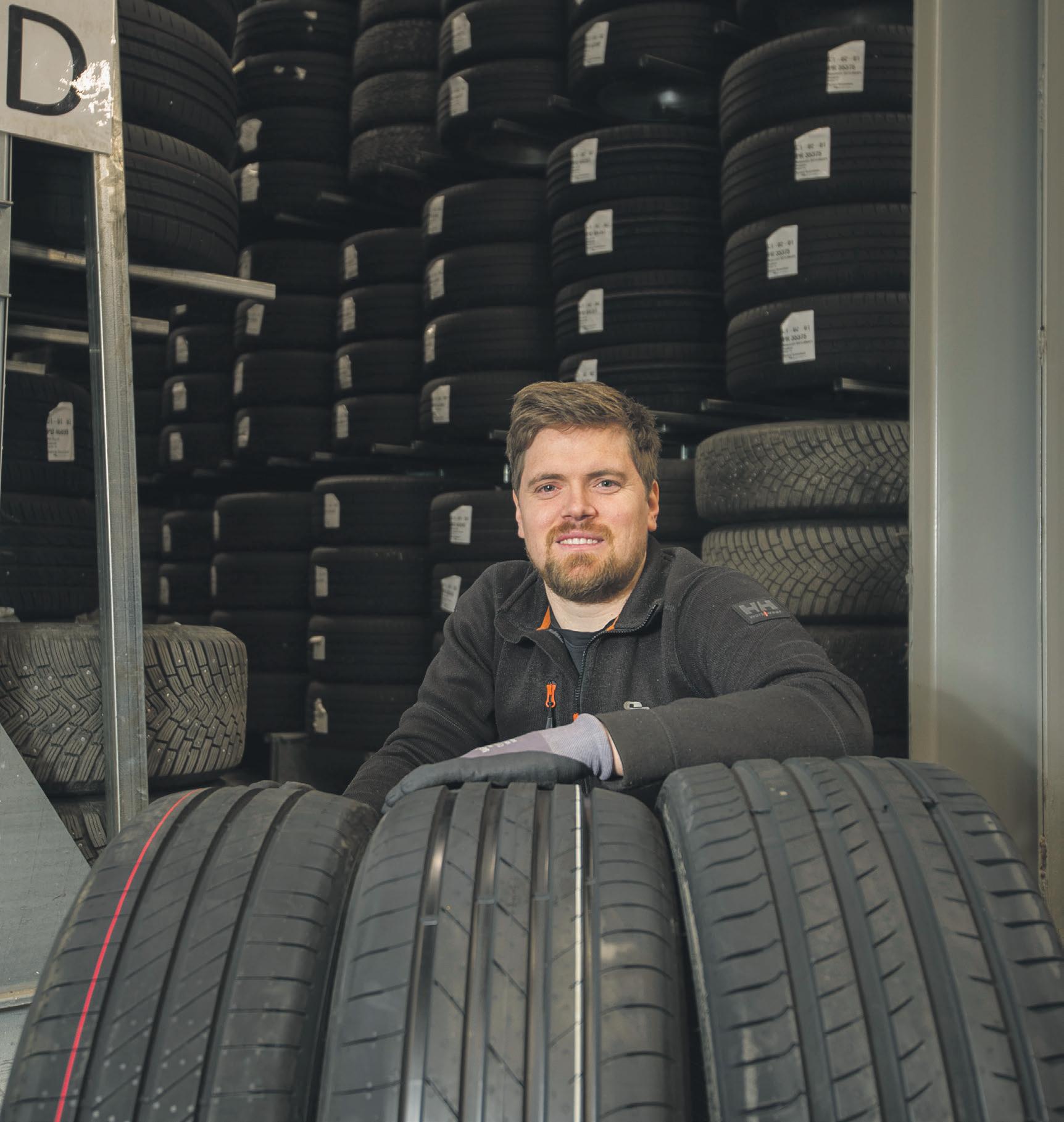 -Vi har stort sett rush på hjulskift og salg av nye dekk i hele april og litt ut i mai. Det topper seg litt rundt uka etter påske når piggdekkene må av i henhold til regelverket, forteller Aleksander Alvær, dekkansvarlig hos Per Hagen Bilrekvisita på Mjåvann.