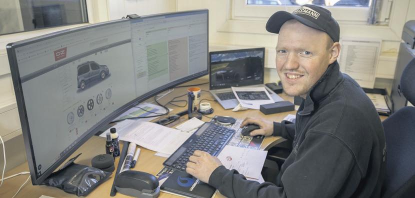 Vi tar utgangspunkt i kjøretøyets registreringsnummer, når vi taster det inn i dataprogrammet, får vi opp den korrekte fargekoden, forklarer Joachim Hagen, medarbeider hos Per Hagen Bilrekvisita. Joachim har spesielt ansvar for lakkavdelingen hvor det blandes lakk til alt fra moderne elbiler til veteranbiler og anleggsmaskiner. Avdelingen har store næringslivsaktører på kundelisten.