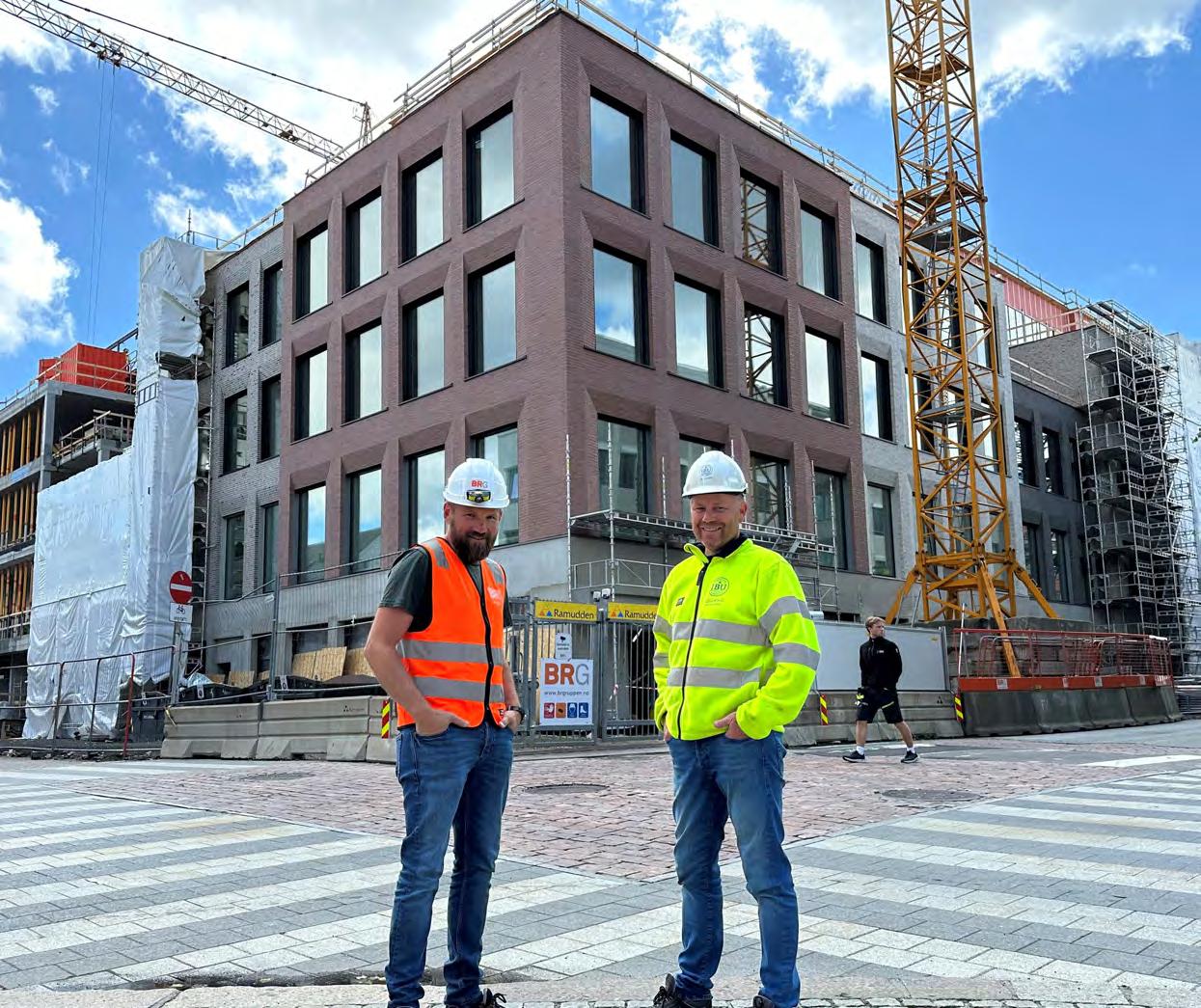 BINDER SAMMEN: Prosjektleder Eivind Hennig i BRG og Arne Rimmereid i J.B. Ugland Eiendom forteller stolt om signalbygget K14 som vil heve standarden og binde sammen gatene i Kvadraturen.