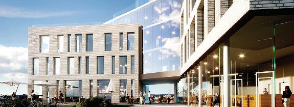 - De fire blokkene er alle koblet til dette rommet som skal fungere som en samlingsarena for hele skolen. Her vil det komme et stort amfi og bibliotek i direkte tilknytting. Veggene skal smykkes ut med kunst laget av Johanne Hestvold. Utvendig er det Kristoffer Myskja som står for oppgaven, for teller han.