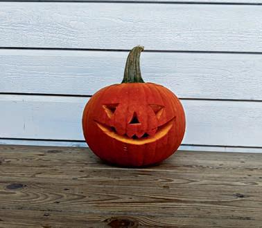 -Nå kan du sette noen te-lys inne i gresskaret. Hold gresskaret under oppsyn når du har levende lys i det. Skal gresskaret stå lenge og uten oppsyn, kan du ta en lyslenke på batteri i den, eller te-lys/kubbelys på batteri.