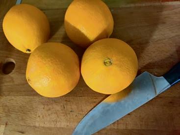 Kjøp appelsiner og skjær dem i tynne skiver. Jo tykkere skiver jo lengre må de være i ovnen.