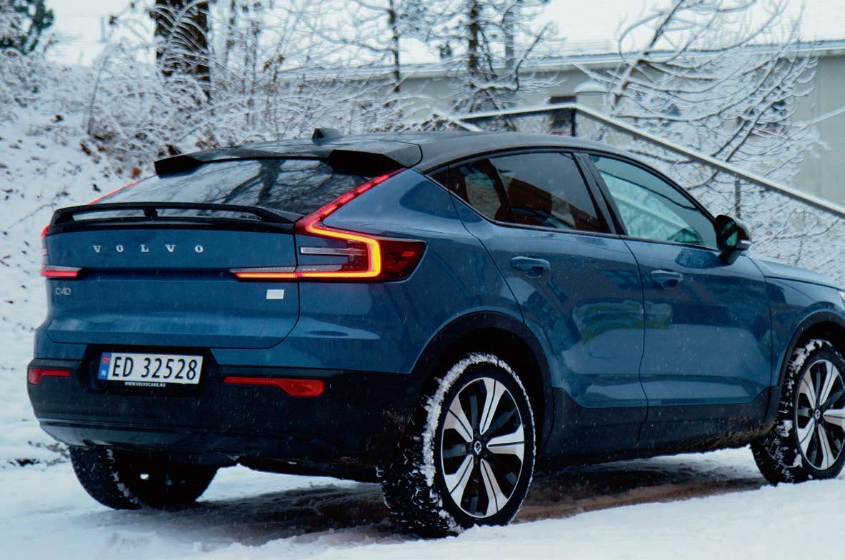 Dette betyr alle elbiler blir dyrere fra nyttår. Og jo dyrere bilen er i utgangspunktet, desto større blir prishoppet. Ser man for eksempel etter toppmodellen av Porsche Taycan –Turbo S Cross Turismo som starter på drøyt 1,7 millioner kroner – må man fra 1. januar legge på 327.000 kroner til, ifølge en utreg ning fra Opplysningsrådet for veitrafikken. Også biler som koster langt mindre enn denne, får et betydelig påslag. En velutstyrt Volvo C40, som nå koster 580.000 kroner, blir litt over 40.000 kroner dyrere.