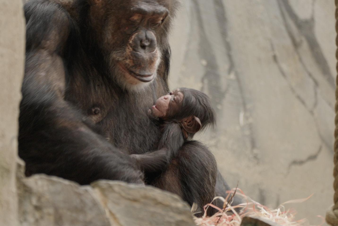 Det er sjimpansehunnen Miff (37) og leder av flokken, Julius (44), som er blitt foreldre. Det er første gang sjimpanseparet får unge sammen.