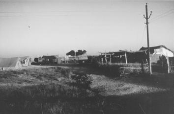 The original hut on the Bhubaneswar land (far right)