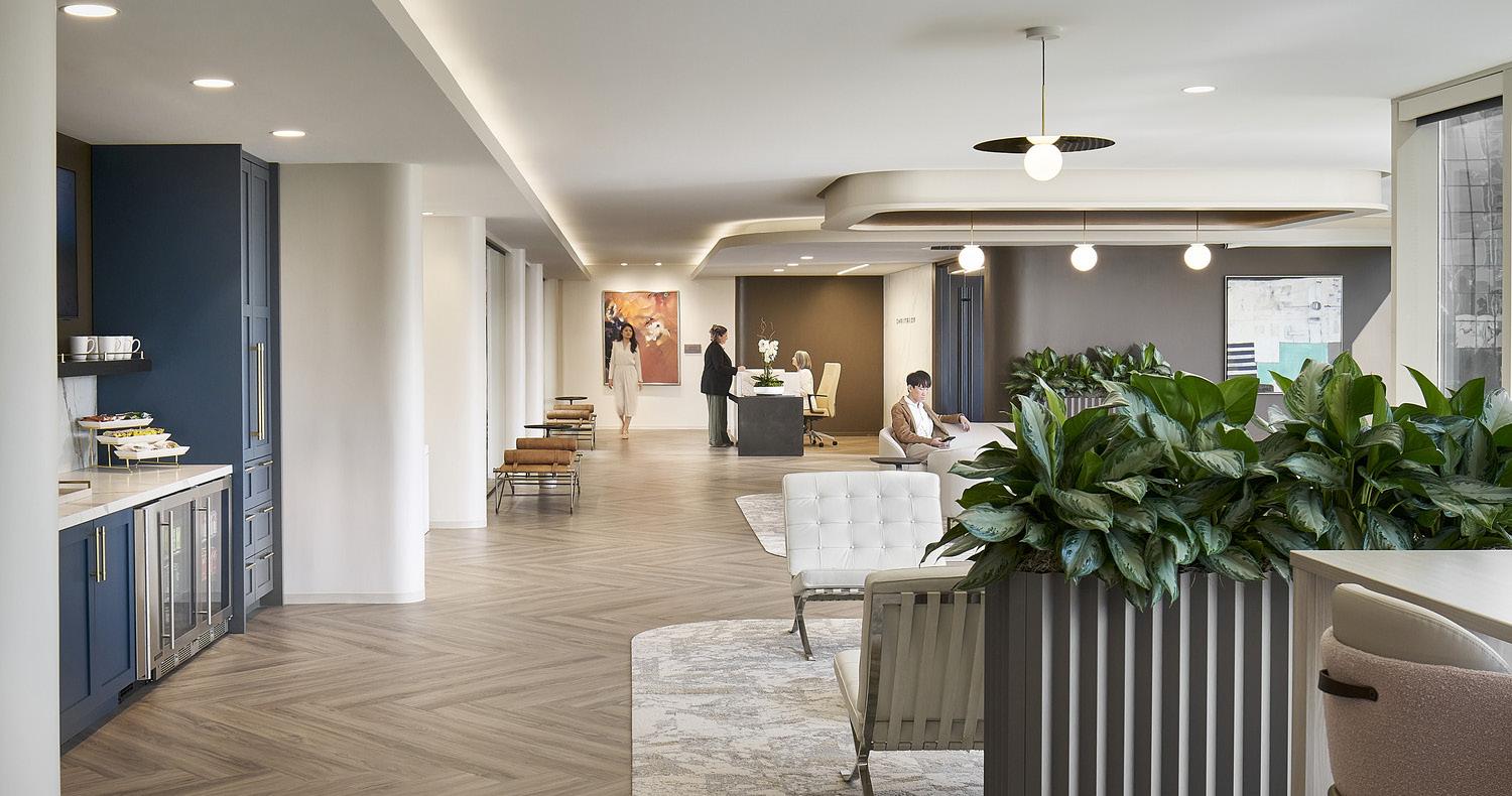 The team also pursued lofty LEED and WELL certification goals, with the aim of making the new office a space that promotes wellness and wellbeing. It was important that everything from policy and operations to the physical environment enable every person in the firm to thrive. Another key challenge was a very tight budget and schedule under challenging construction conditions, fraught with high inflation and long lead times.