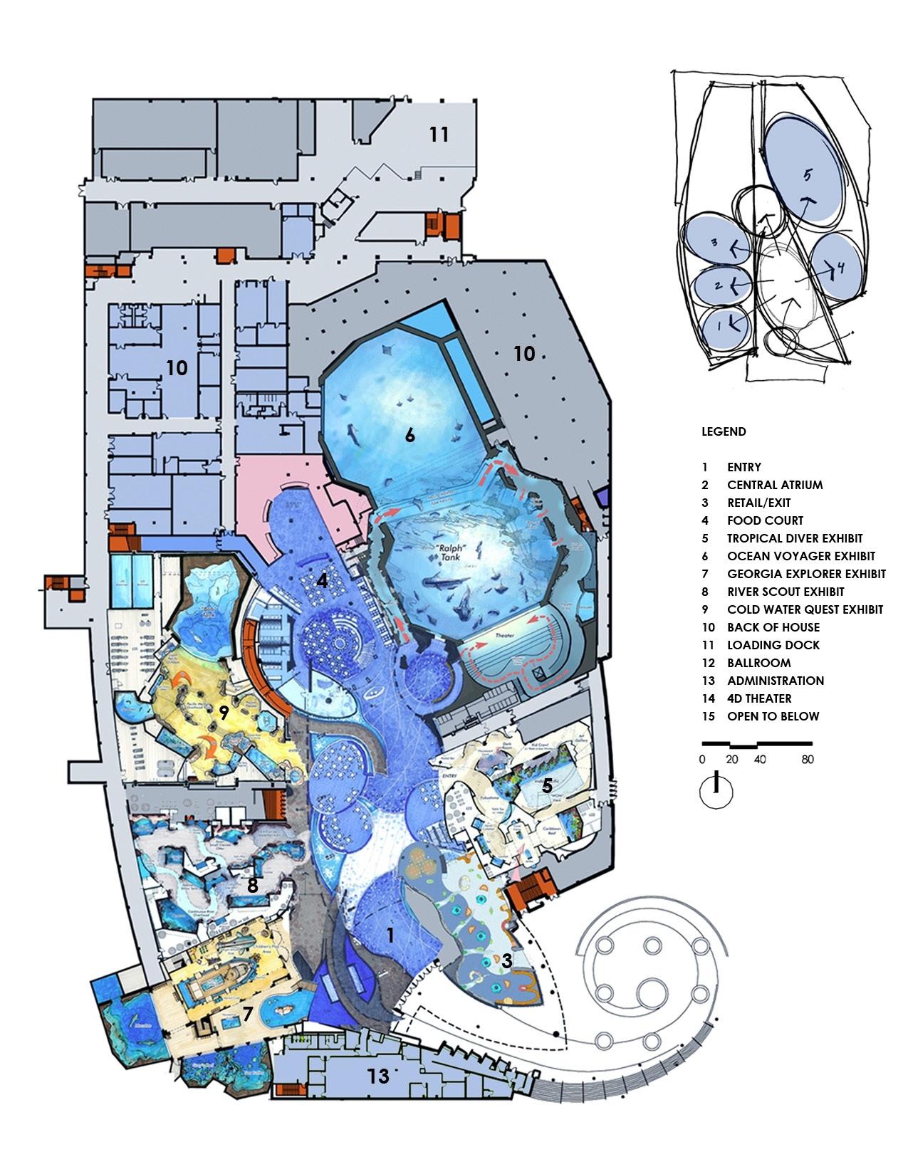 Given Atlanta’s land-locked address, the design team focused on the importance of immersion, wrapping the guest into the underwater world from start to finish, coming face to face with some of the most incredible ocean creatures. The design of the Georgia Aquarium shifts the paradigm of what is an aquarium and how its visitors will interact with its inhabitants.