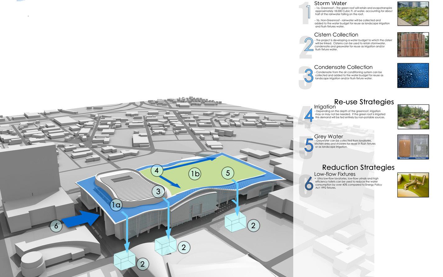 recycled exhibit water through a saltwater recovery system uses less water than a typical office building