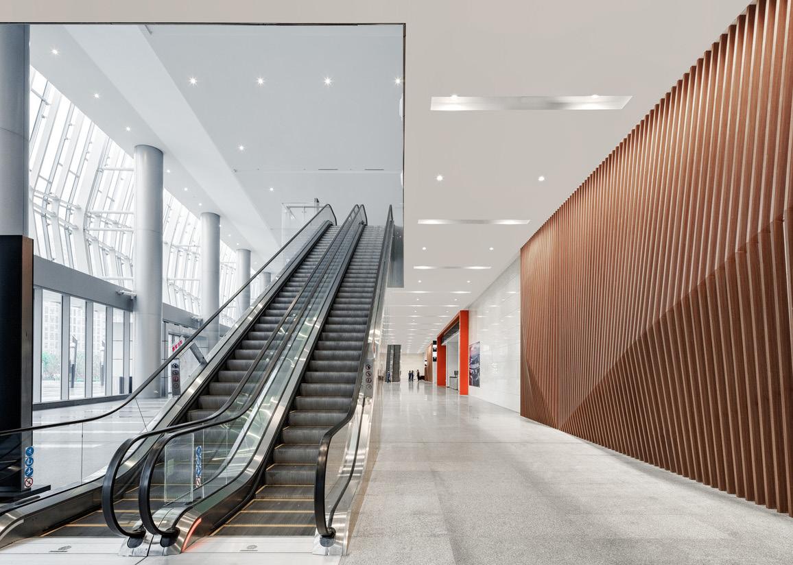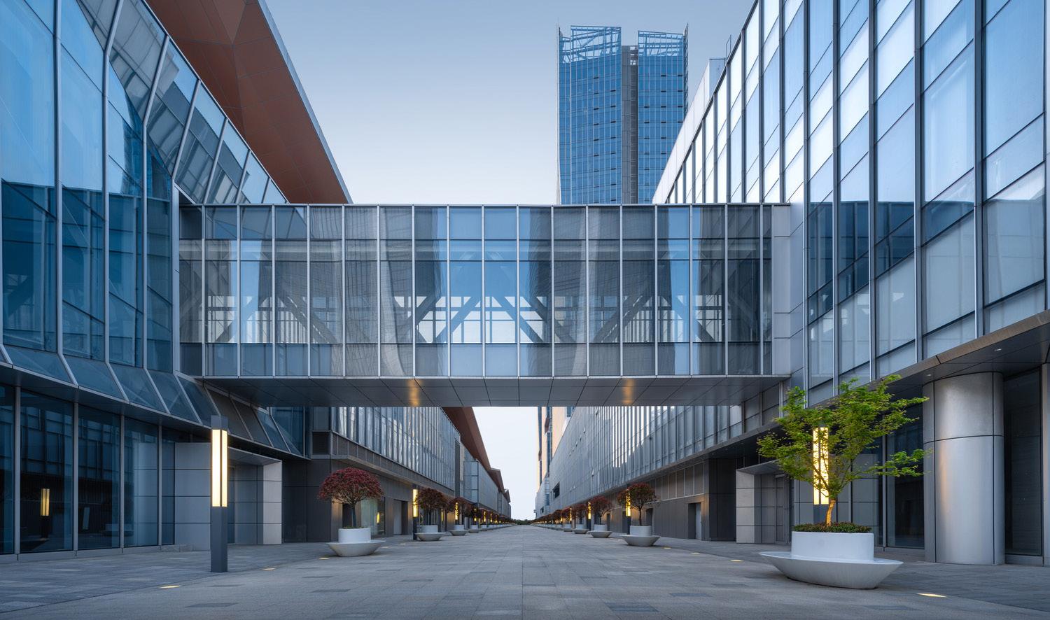 Finally, and most importantly, Phase III boasts a 400 meter long pedestrian laneway between the exhibition hall and south podium that realizes an urban design goal for the greater Hexi District of a comprehensive system of separate, dedicated pedestrian environments. The laneway provides a dynamic offering of retail and entertainment venues in service to exhibition attendees and residents of Hexi.