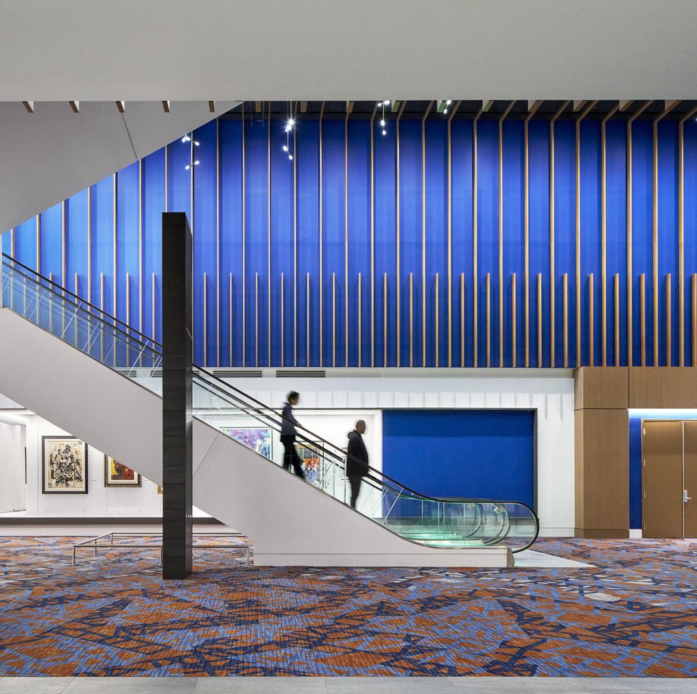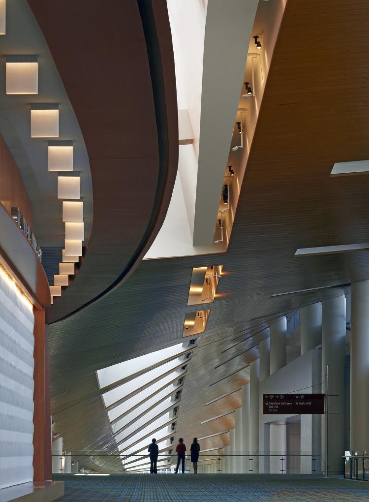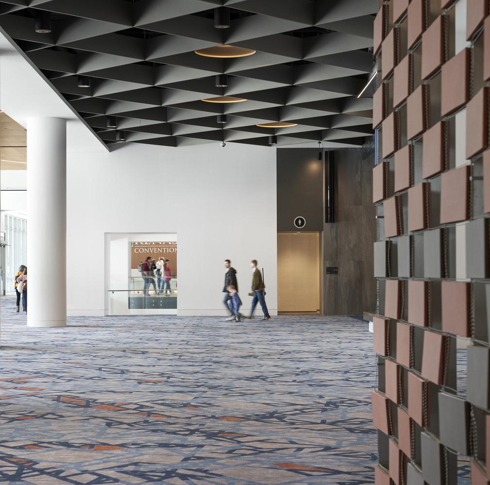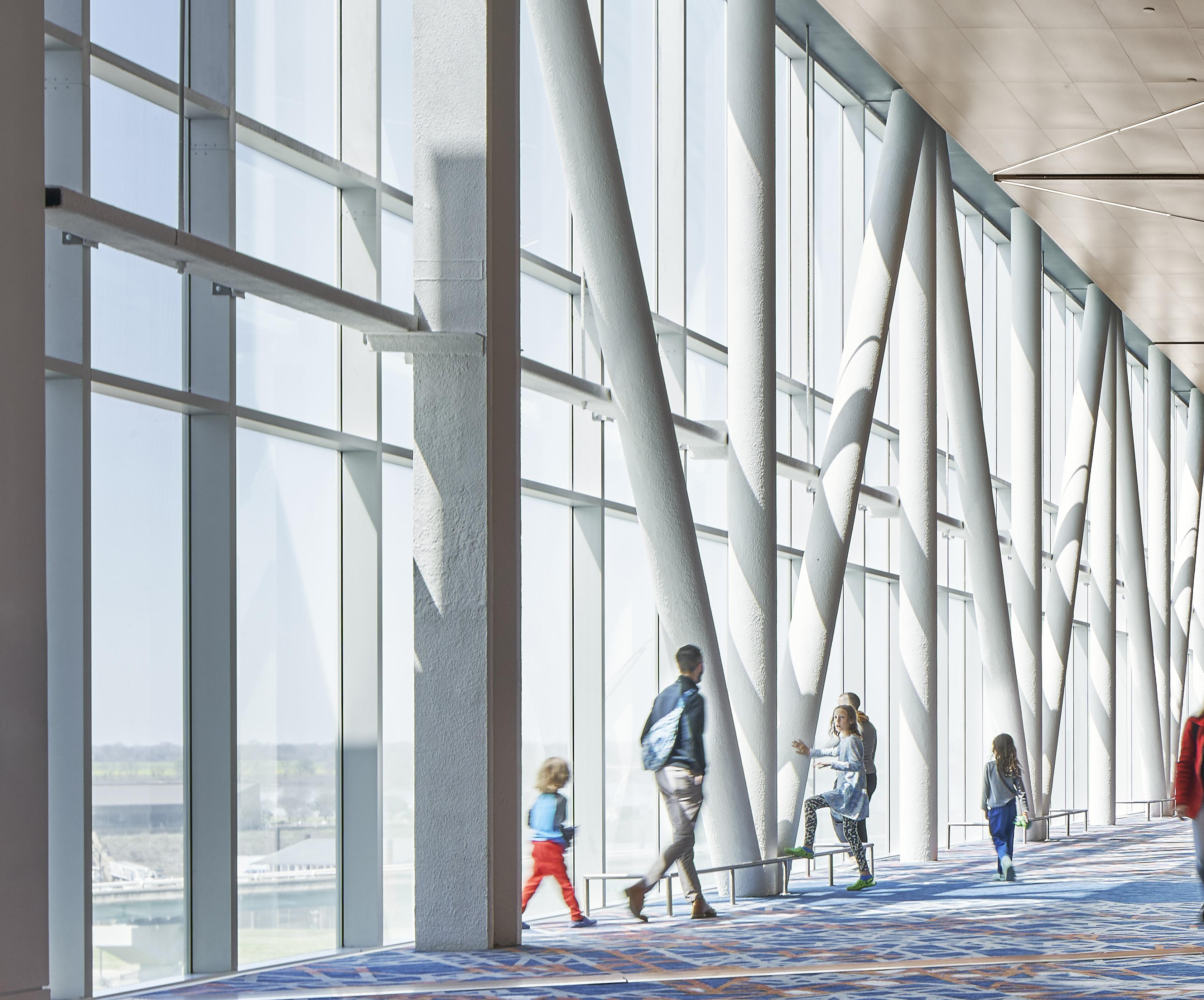 The TVS team pioneered the light filled linear concourse, a highly functional main passageway. All meeting and exhibit space flows from the concourse, presenting friendly and clear wayfinding. Movement and animation in the design are achieved through the use of generous clerestories, latticed steel and strong interior patterns: the interplay of light and shadows further animating the visitor’s experience.